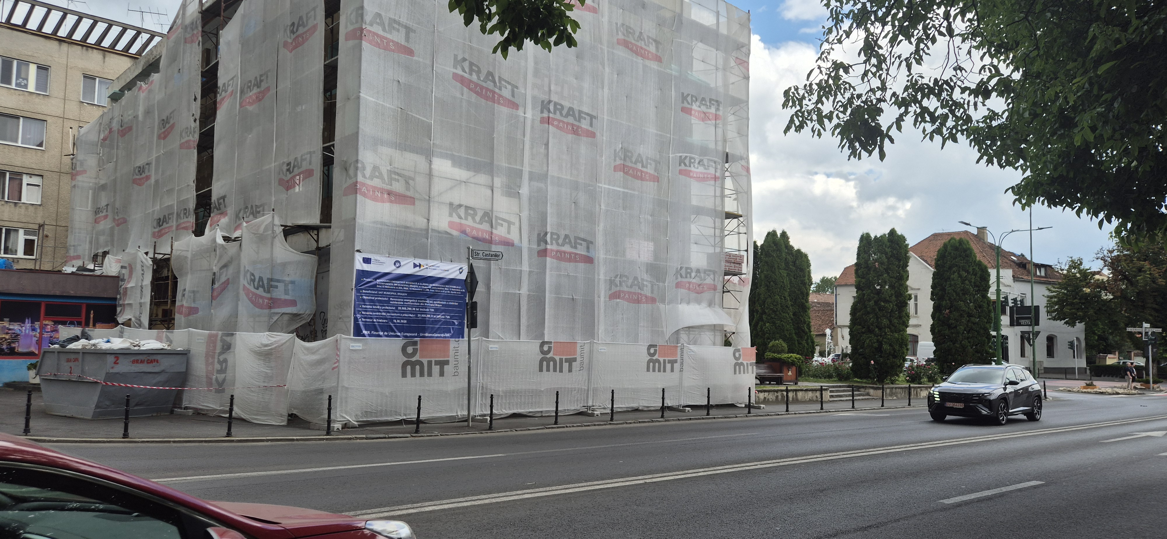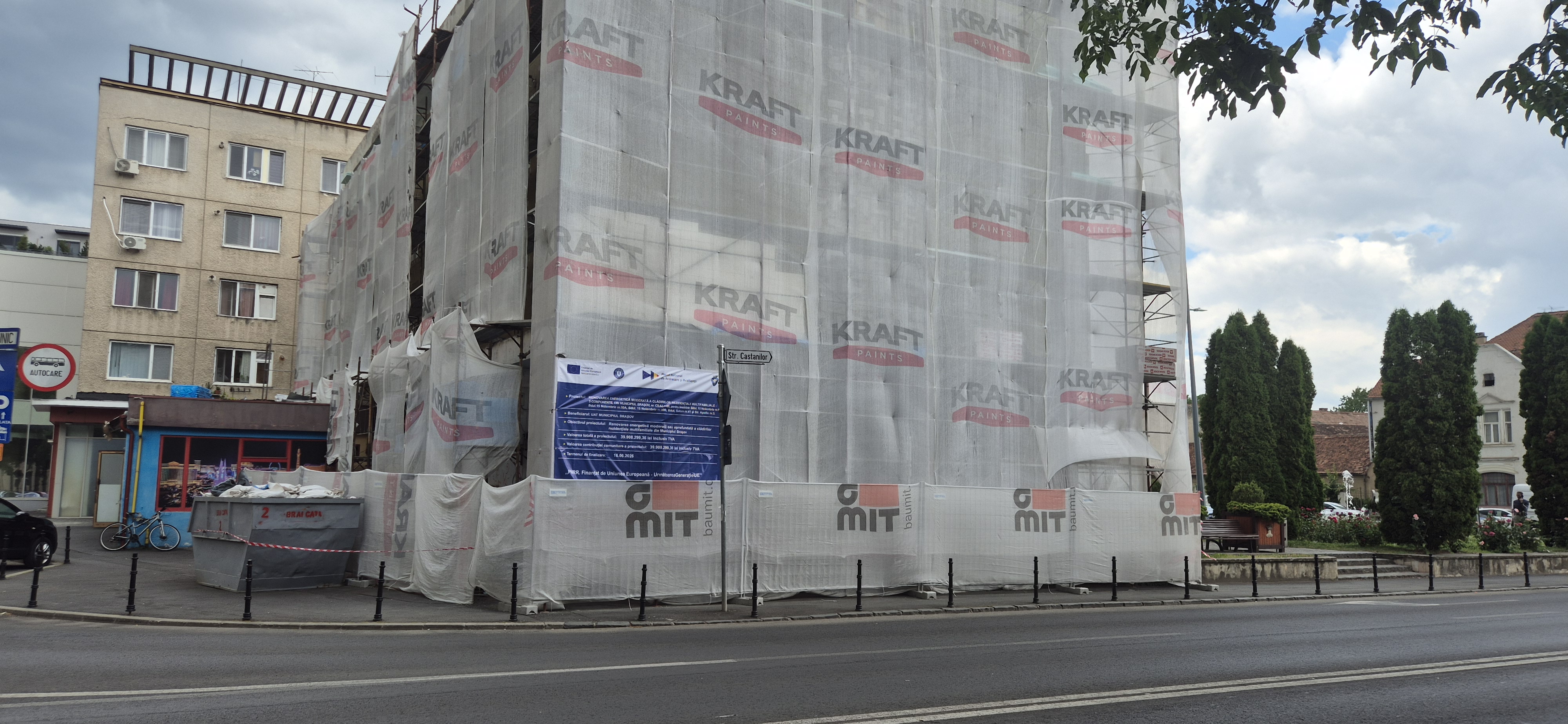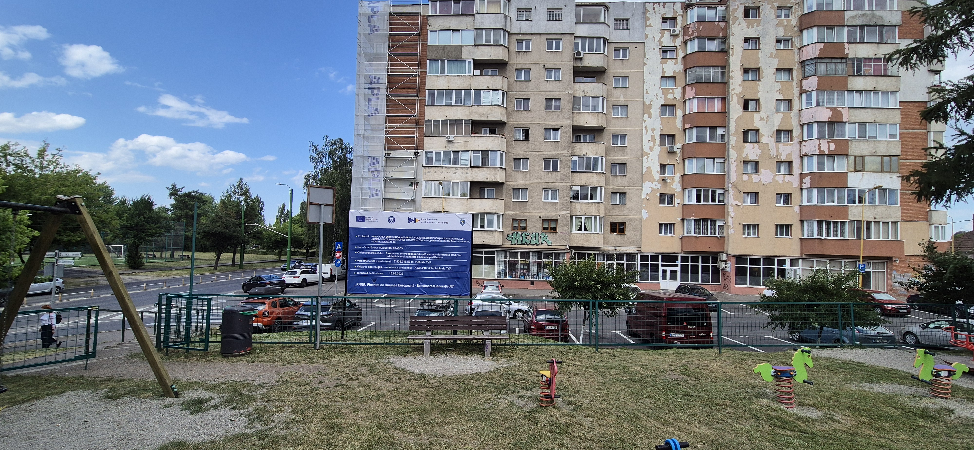 Municipiul Brașov în calitate de Beneficiar, implementează Proiectul “ C5-A3.1-47, intitulat “RENOVAREA ENERGETICĂ MODERATĂ A CLĂDIRILOR REZIDENȚIALE MULTIFAMILIALE – 4 COMPONENTE, DIN MUNICIPIUL BRAȘOV”, finanțat în cadrul Planului Național de Redresare și Reziliență, Componenta 4 – Valul Renovării, Axa 1 – Schema de granturi pentru eficiență enegetică și reziliență în clădiri rezidențiale multifamiliale, Operațiunea A.3 – Renovarea energetică moderată sau aprofundată a clădirilor rezidențiale multifamiliale, titlul apel: PNRR/2022/C5/1/A.3.1/1, Contract de finanțare nr. 145227/21.12.2022, pentru imobilul situat în Municipiul Brașov: str. Hărmanului nr.76-78.