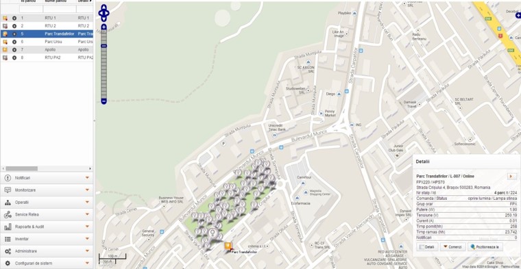 - Monitorizare şi control de la distanţă, la nivel de corp de iluminat